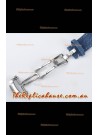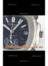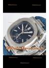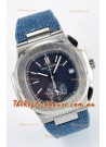 Genuine Fabric/Leather Hybrid Strap in Blue with Double Fold Stainlless Steel Clasps with Patek Philippe Markings/Engravings