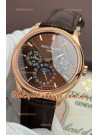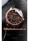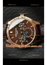 Genuine Swiss 9015 Movement assembled to Resemble the Authentic Patek Philippe PP 324 Calibre Style Movement. Updated Rotor, Bridged and Engravings on Movement with Rose Gold Plated Patek Philippe Stamped Rotor