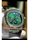 Green Dial with 3 Functional Sub Dials as Day, Month and Date Indicators. Moonphase Functions as Day and Night Feature