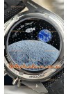 The Globe Located at the rear would rotate and complete one revolution per Minute, the Snoopy on Spaceship would rotate counter clockwise in conjunction to the Chronograph second hand once the Chronograph feature is activated.