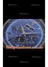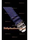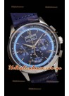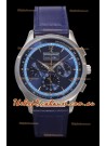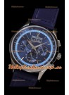 Blue Dial with Day/Date Indicator at 12 O'Clock, Date Counter, Day of Week Counter and 12/24 hours counter with Day and night Moon Phase Indicator.