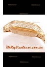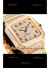 Cartier "Santos De Cartier" Yellow Gold W/ Diamonds Arabic Dial 1:1 Mirror Replica - 40MM - Genuine Diamonds