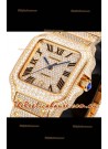 Cartier "Santos De Cartier" Yellow Gold W/ Diamonds Roman Dial 1:1 Mirror Replica - 40MM - Genuine Diamonds