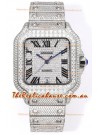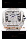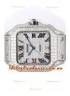 Cartier "Santos De Cartier" Stainless Steel W/ Diamonds Roman Dial 1:1 Mirror Replica - 40MM - Genuine Diamonds