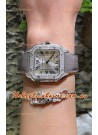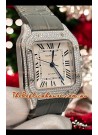 Santos De Cartier Watch in White Dial 39.50MM MOSSANITES Paved Bezel Swiss Replica Watch