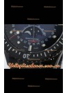Blue Dial with Day and Month Indicator at 12 O'Clock, Day and Night Indicator at 6 O'Clock and Date Indicator Long Hands