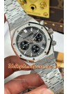 Frosted White Gold Plating on 904L Stainless Steel Strap completed with AP Markings and Engravings as per the originals and AP Folding Clasp