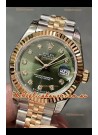 Rolex Datejust Super Clone Green Dial Rose Gold Steel Watch 28MM