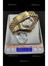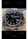 Two Tone Yellow Gold Plating 904L Stainless Steel Case as per the Orginal with Metallic Black/Blue Ceramic Inserts.