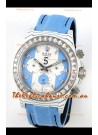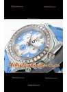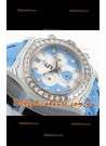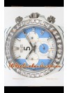 White/Blue Dial. Three Functional Sub dials working in conjunction to the stopwatch feature as per the originals. Sapphires Bezel