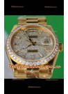 Rolex Day Date Super Clone Yelllow Gold Plated Custom Modified Diamonds Paved Watch