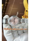 Steel Pink Dial with Roman Hour Markers. Diamonds Bezel