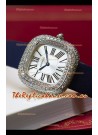 White Steel Dial with Roman Hour Numerals. Swiss Cut Diamonds Bezel