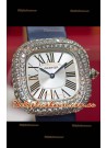 Coussin De Cartier Steel Watch Swiss Replica Watch Blue Strap
