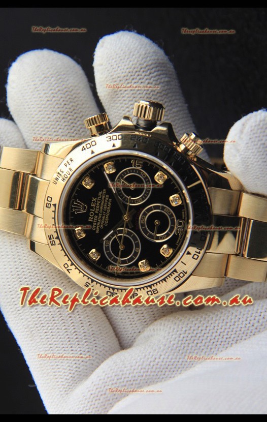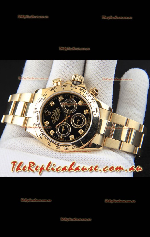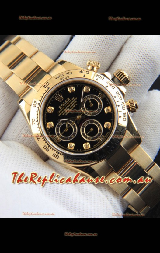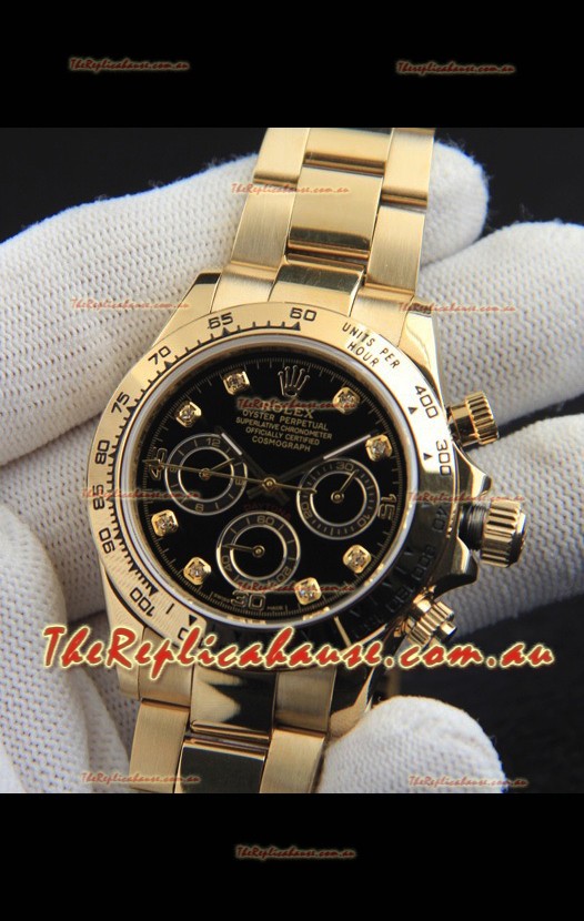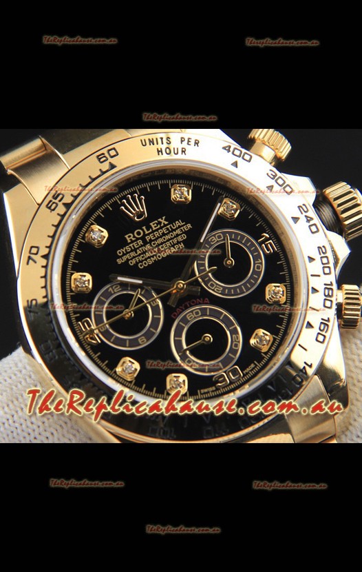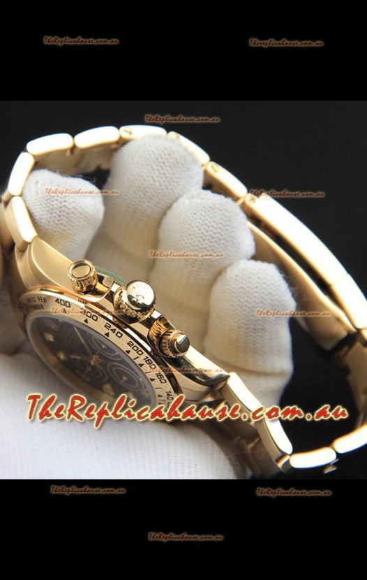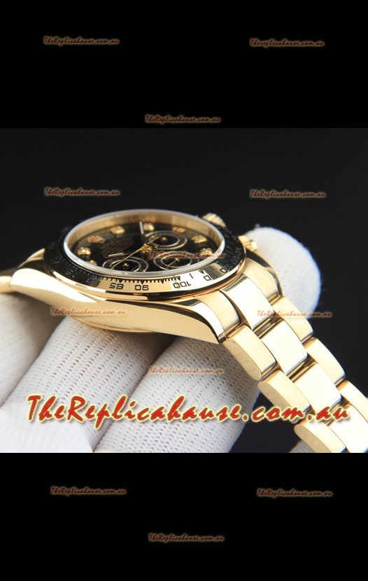 Rolex Daytona Japanese Movement Gold Casing Replica Watch in Black Dial