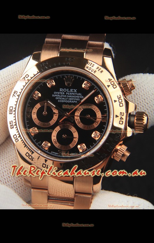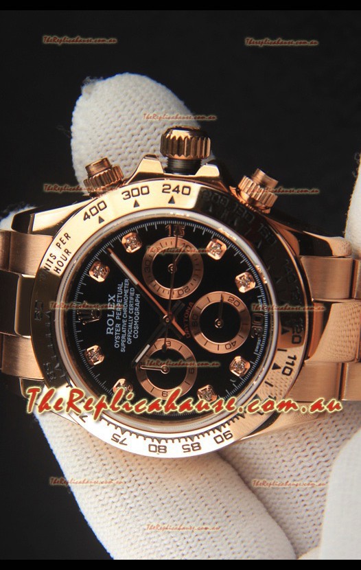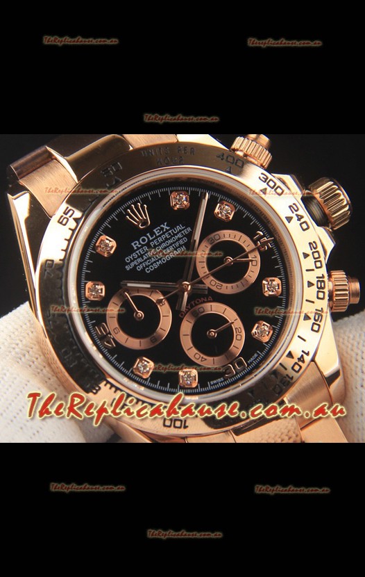 You're reviewing: Rolex Daytona Japanese Movement Gold Casing Replica Watch in Black Dial