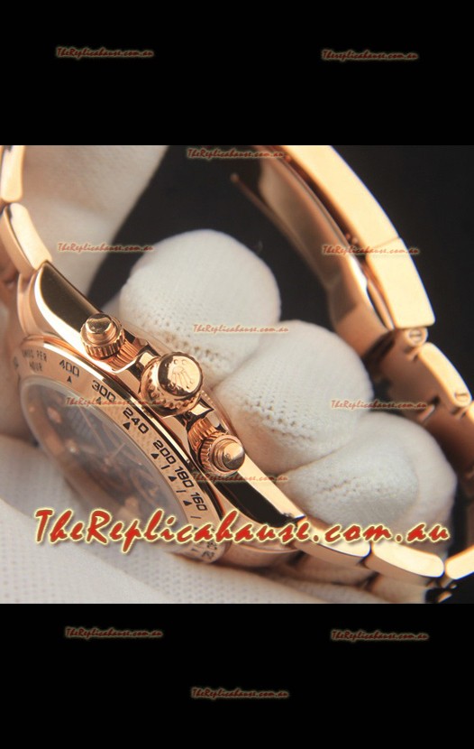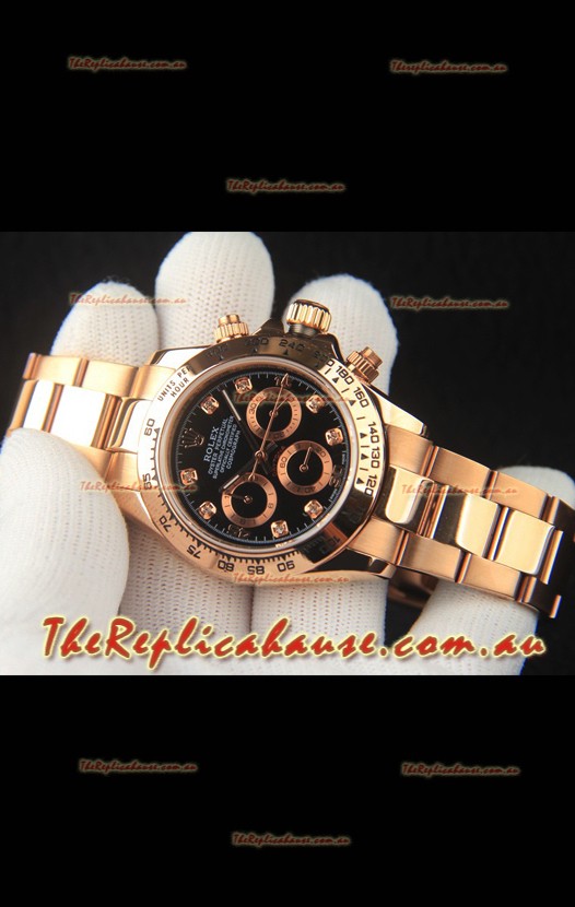 Rolex Daytona Japanese Movement Gold Casing Replica Watch in Black Dial