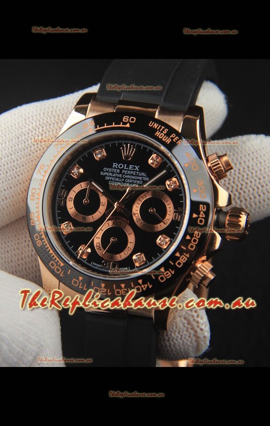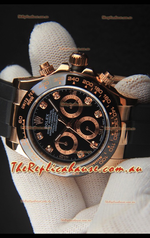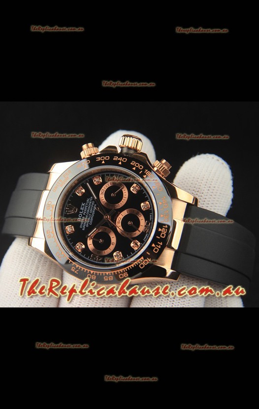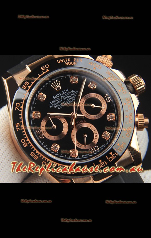 You're reviewing: Rolex Daytona Japanese Movement Gold Casing Replica Watch in Black Dial