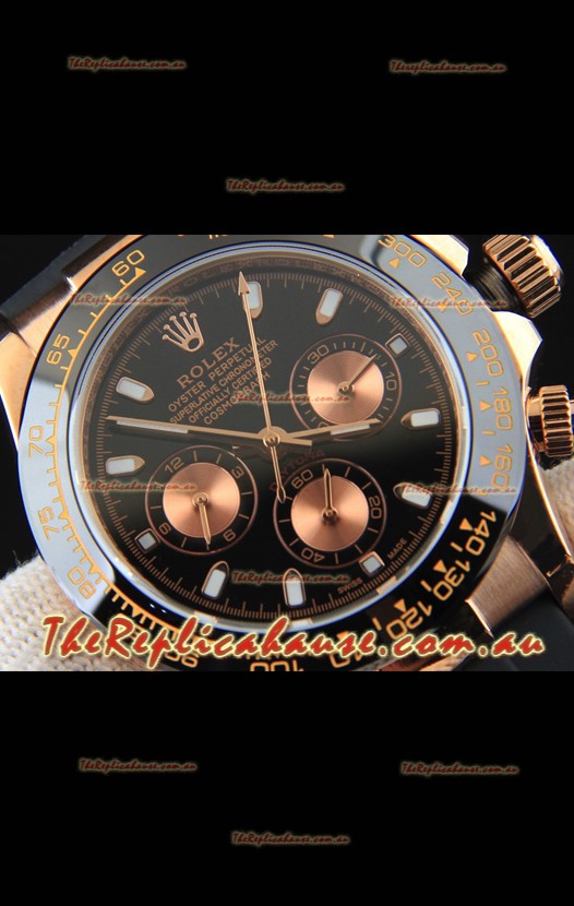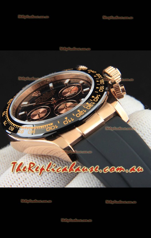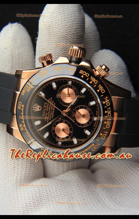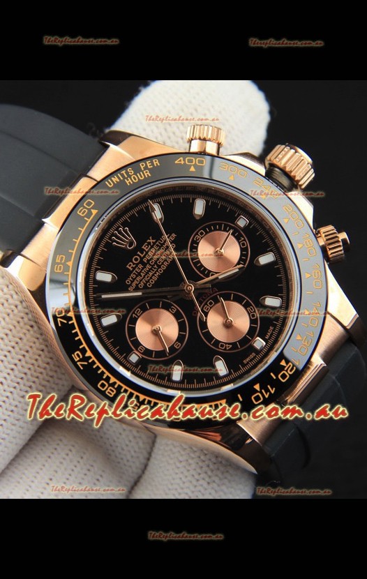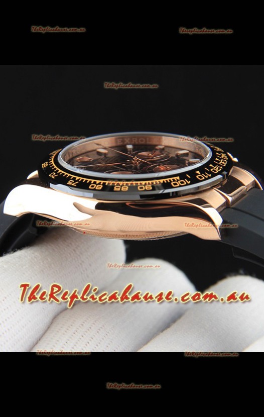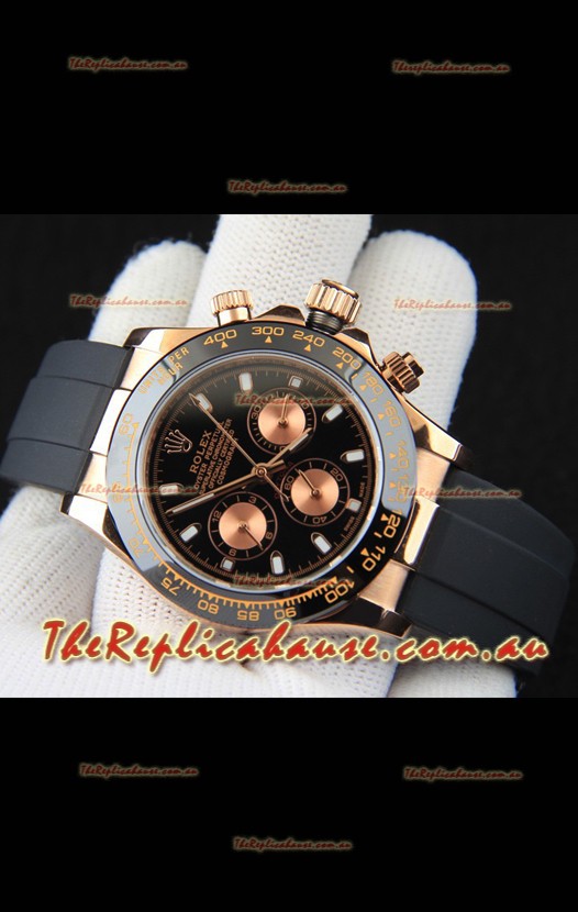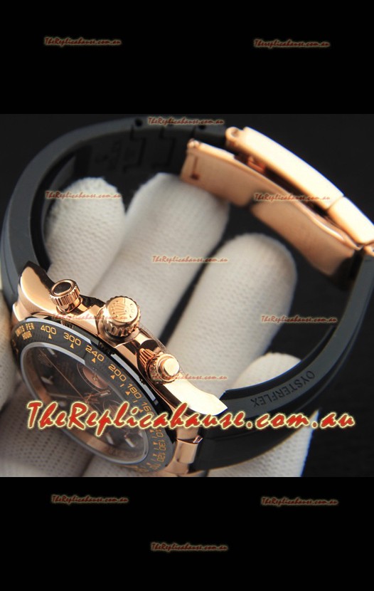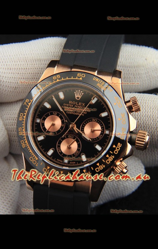 Rolex Daytona Japanese Movement Gold Casing Replica Watch in Black Dial