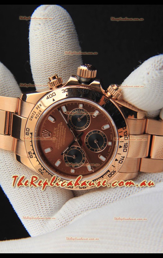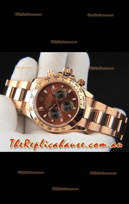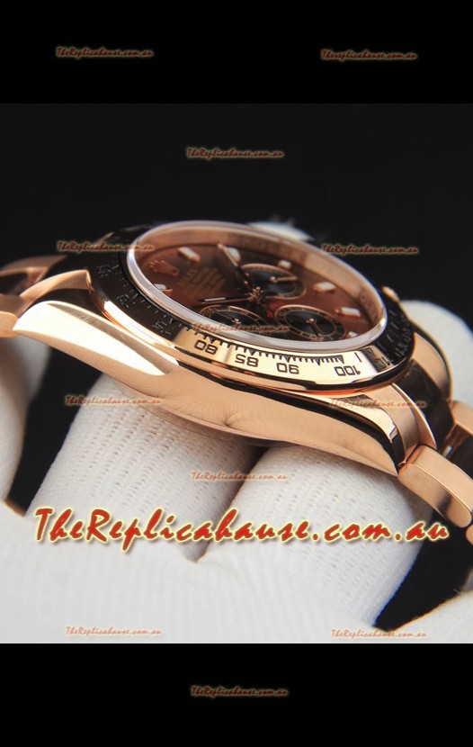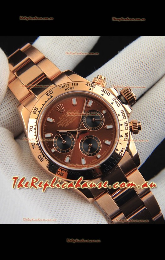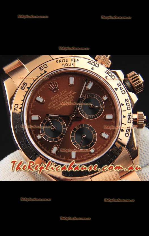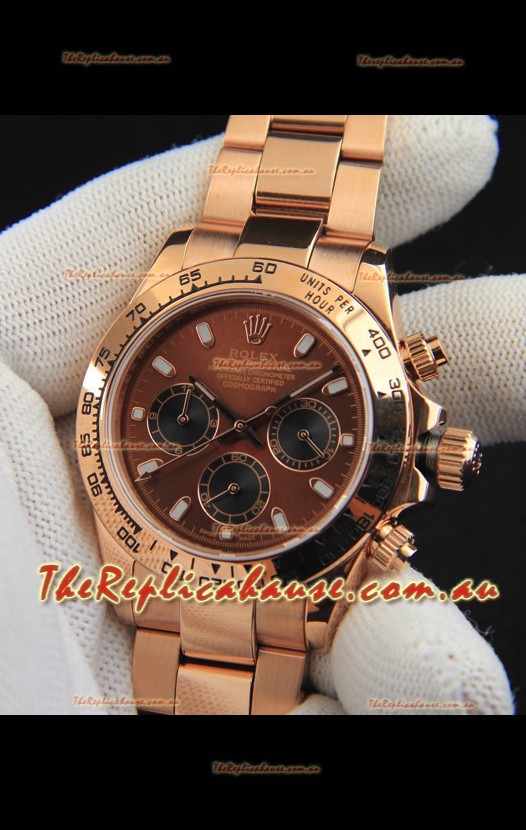 Rolex Daytona Japanese Movement Gold Casing Replica Watch in Brown Dial