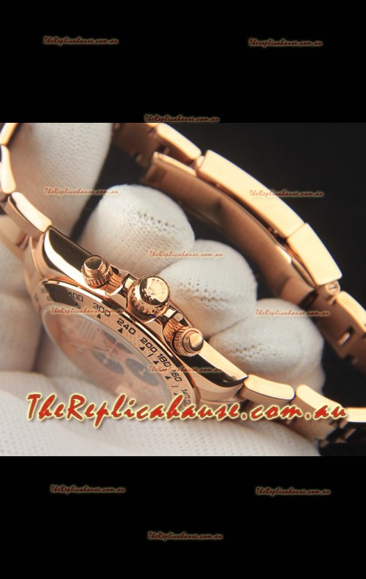 Rolex Daytona Japanese Movement Gold Casing Replica Watch in Champange Dial