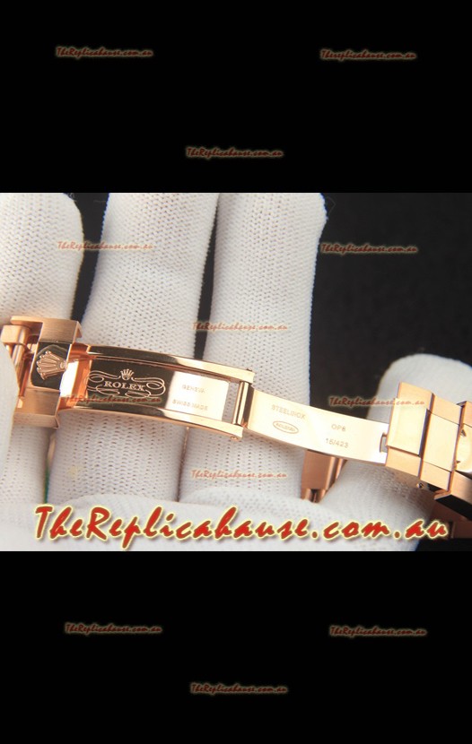 18K Gold Plating on 904L Solid Stainless Steel Case with Rolex Markings and Engravings
