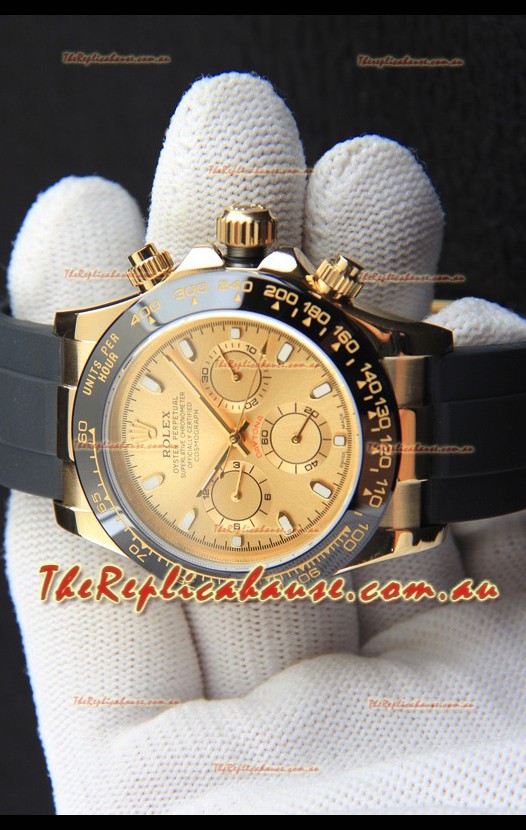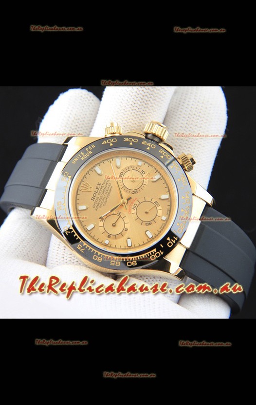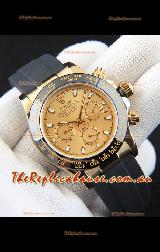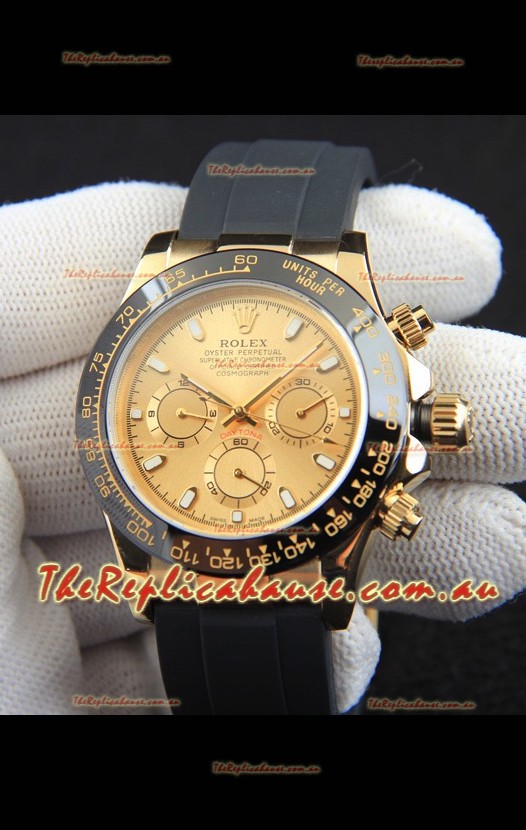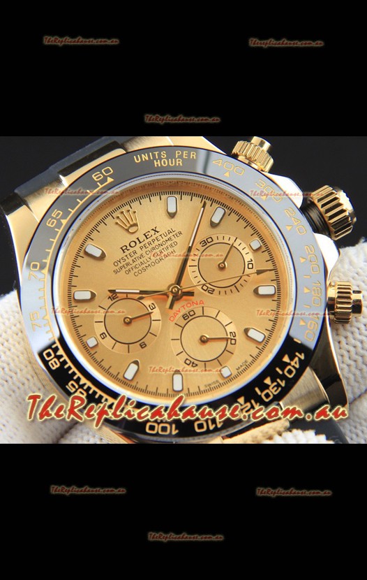 You're reviewing: Rolex Daytona Japanese Movement Gold Casing Replica Watch in Gold Dial