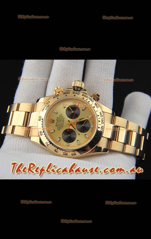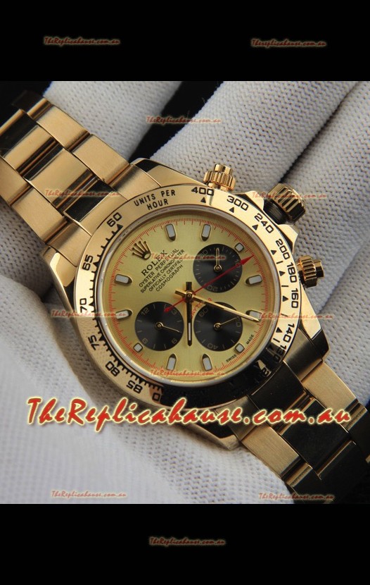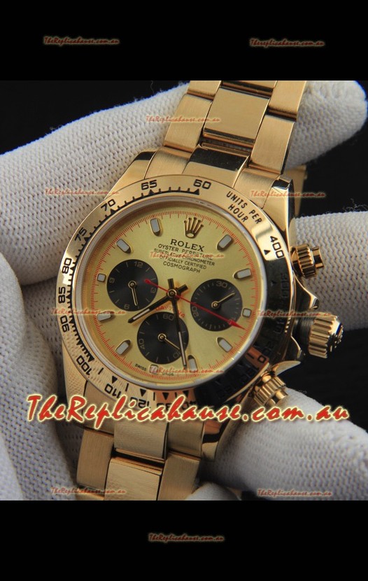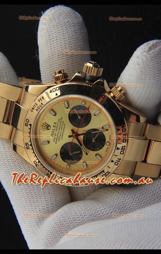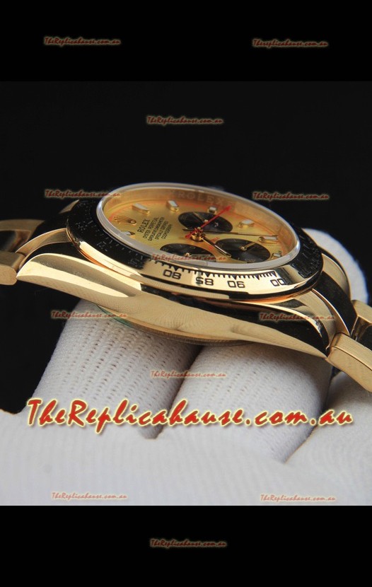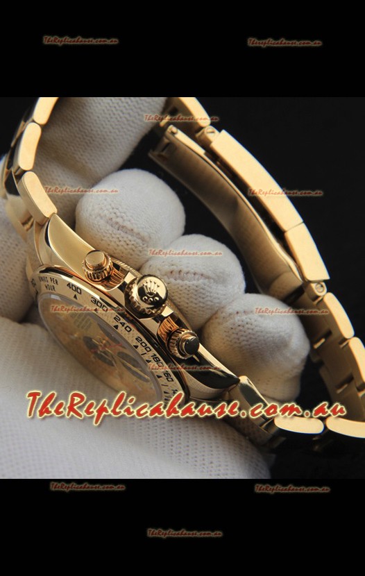 You're reviewing: Rolex Daytona Japanese Movement Gold Casing Replica Watch in Gold Dial