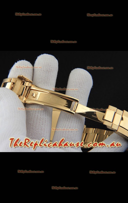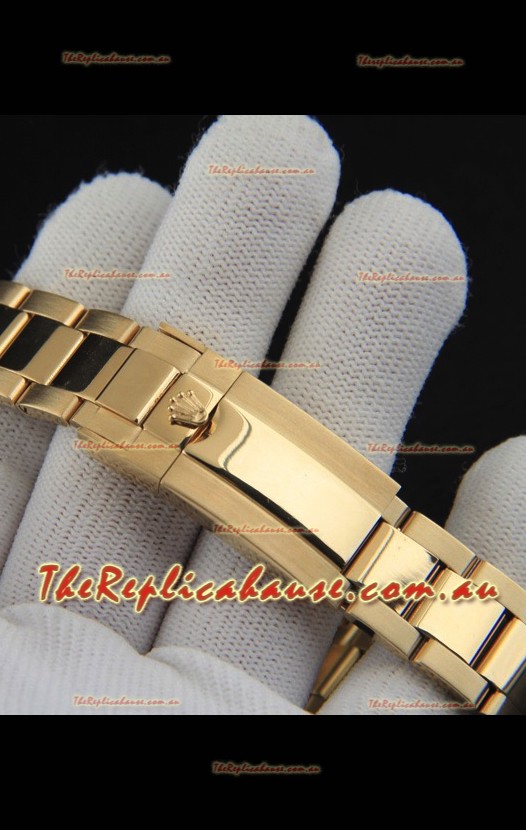 18K Gold Plating on 904L Solid Stainless Steel Case with Rolex Markings and Engravings