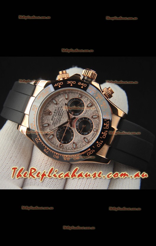 Rolex Daytona Japanese Movement Gold Casing Replica Watch in Meteorite Pattern Dial