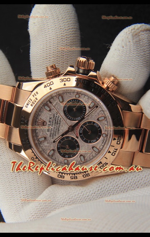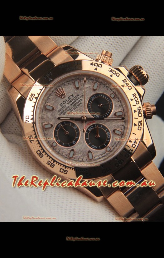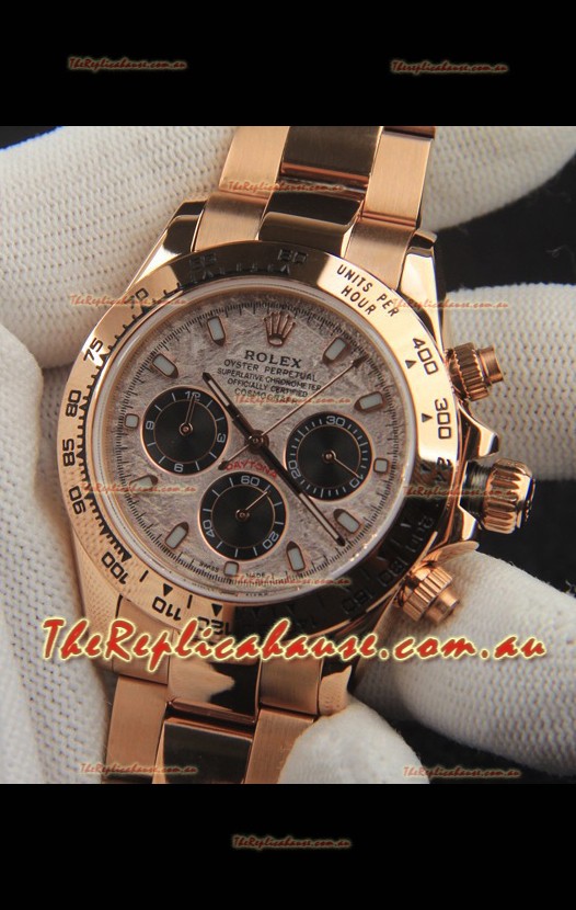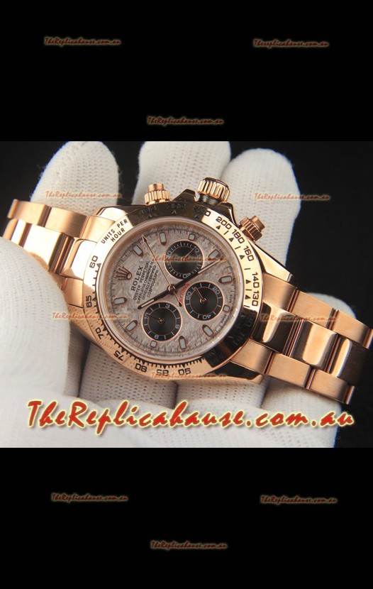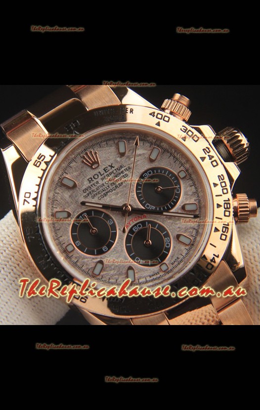 Rolex Daytona Japanese Movement Gold Casing Replica Watch in Meteorite Pattern Dial