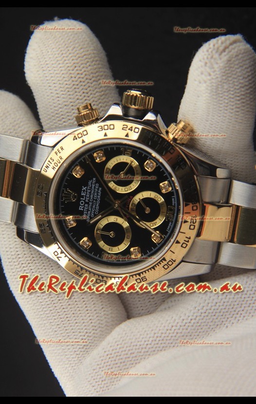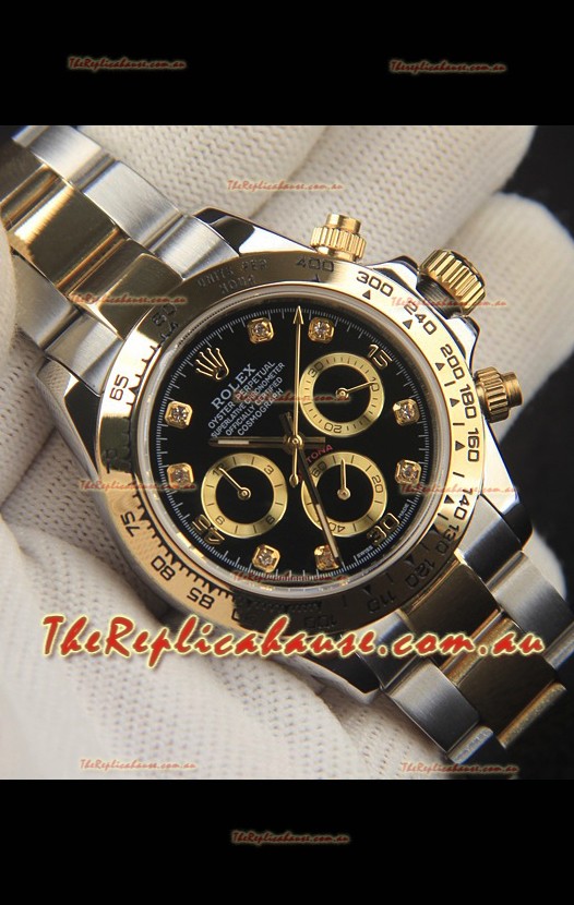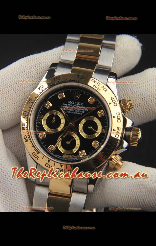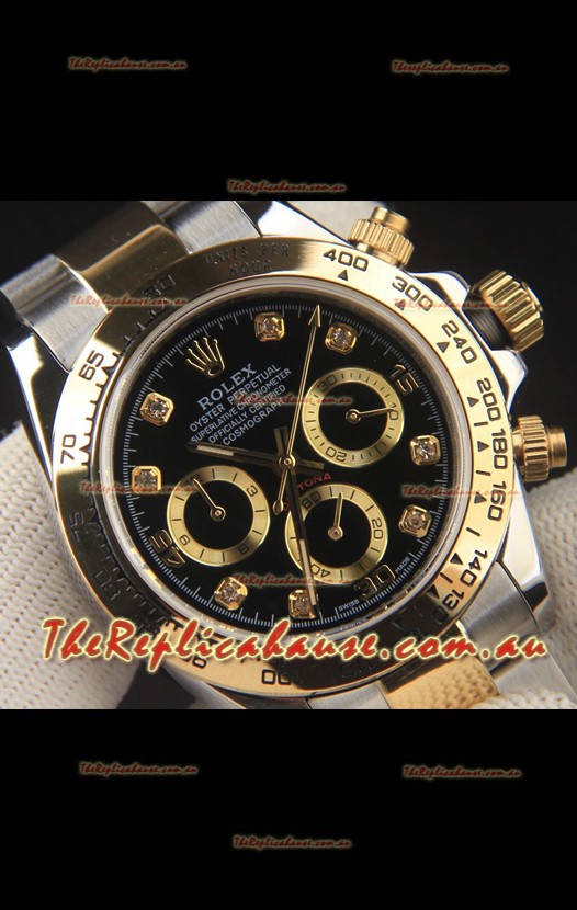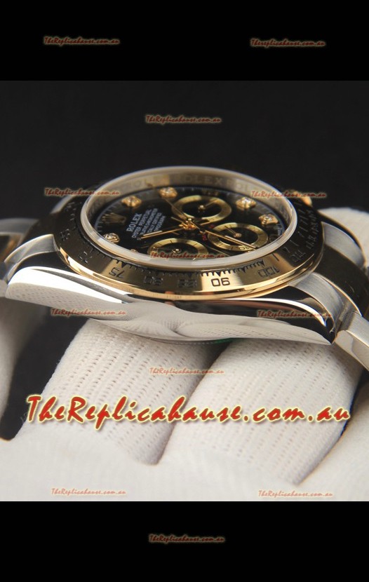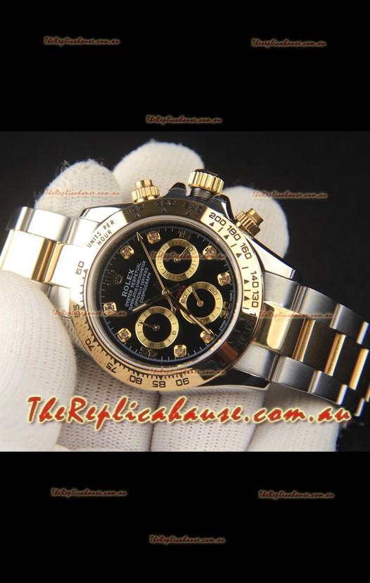 Rolex Daytona Japanese Movement Two Tone Gold Casing Watch in Black Dial