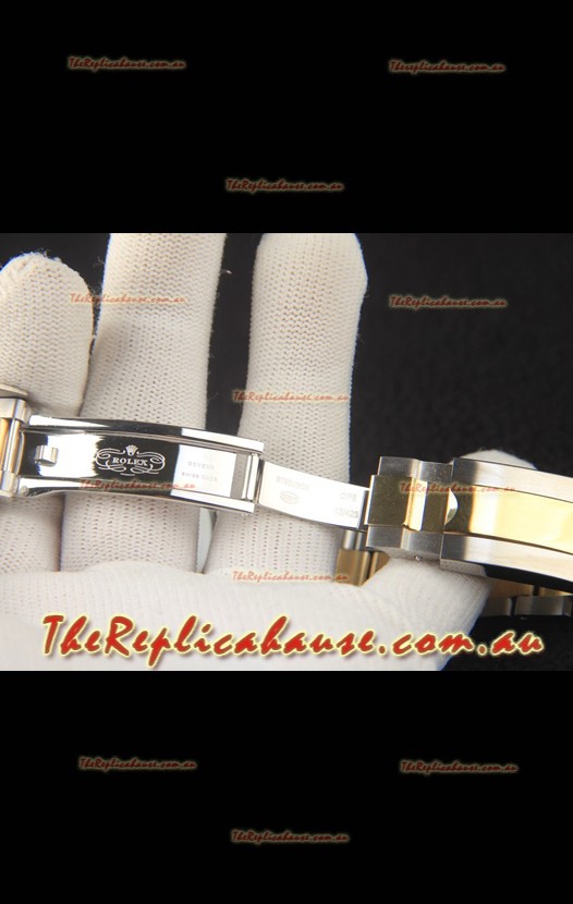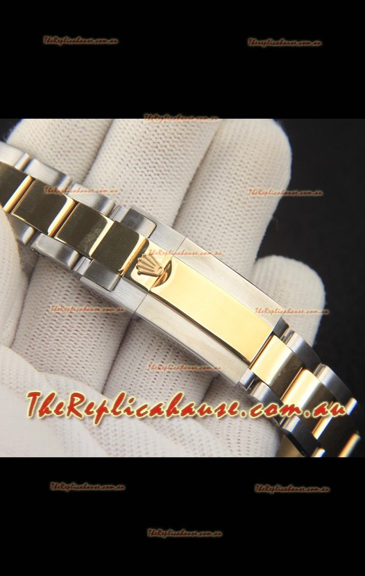 Two Tone 18K Gold Plating on 904L Solid Stainless Steel Case with Rolex Markings and Engravings