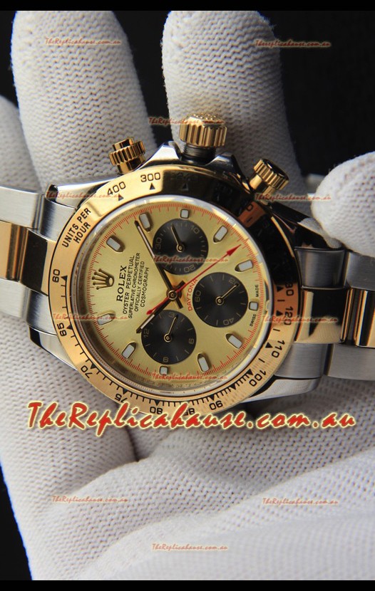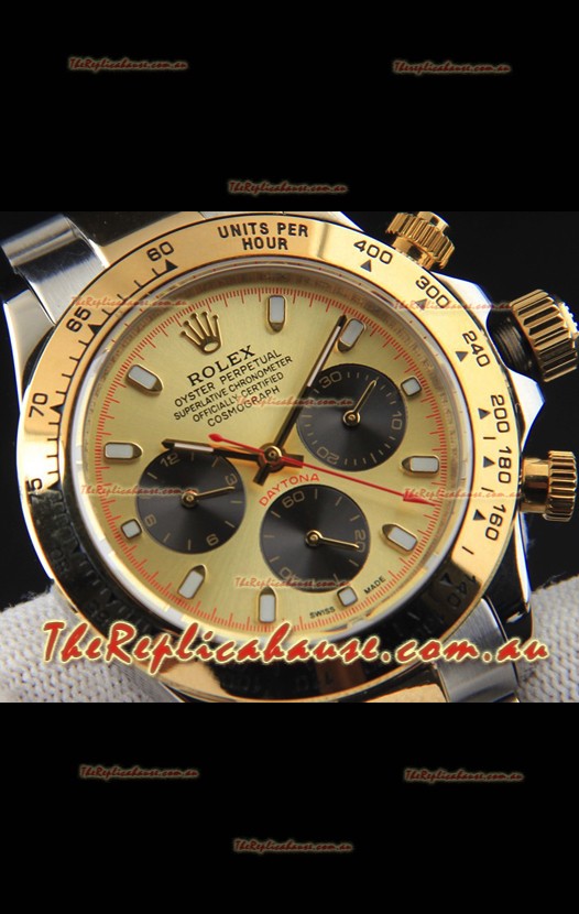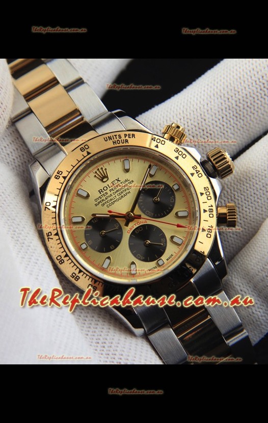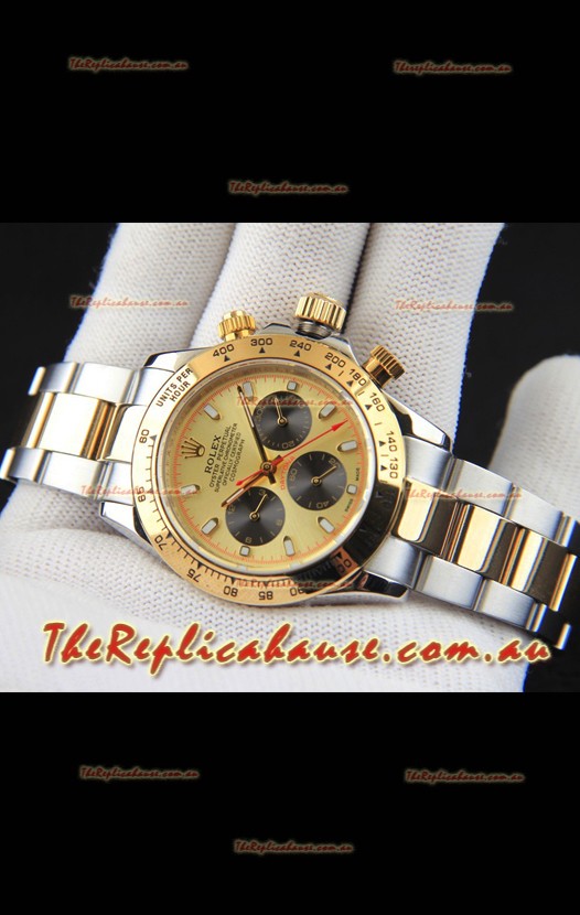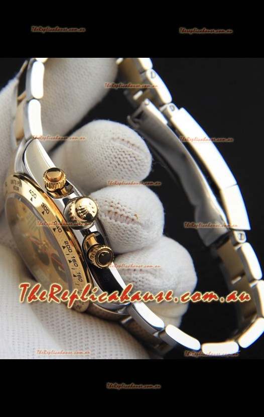 Rolex Daytona Japanese Movement Two Tone Gold Casing Watch in Gold Dial