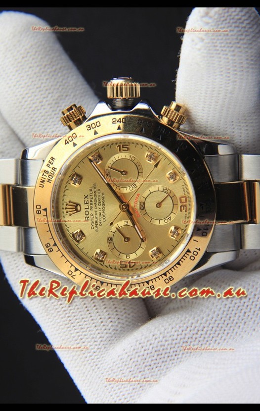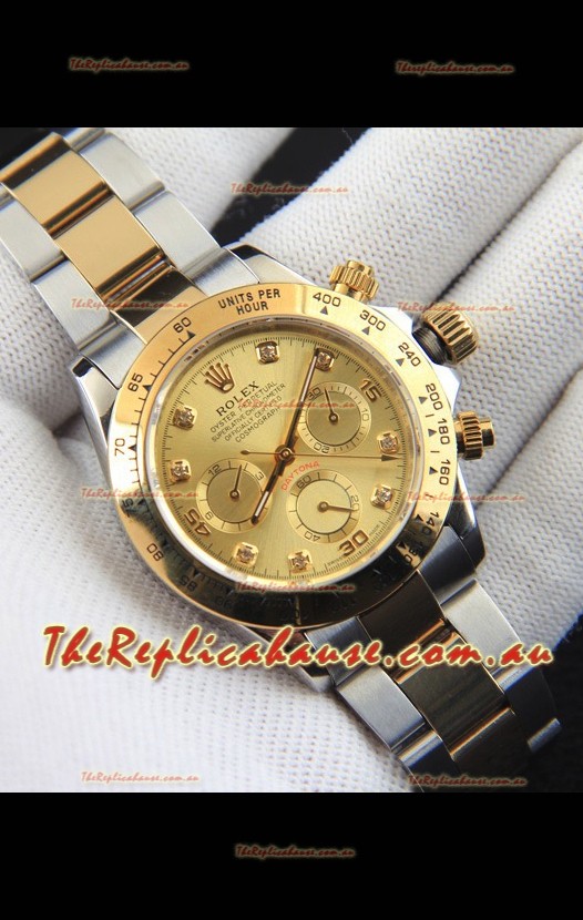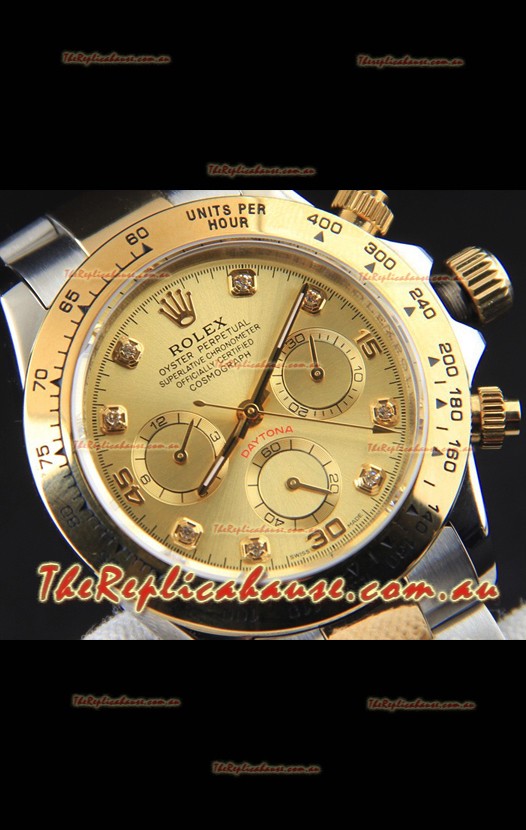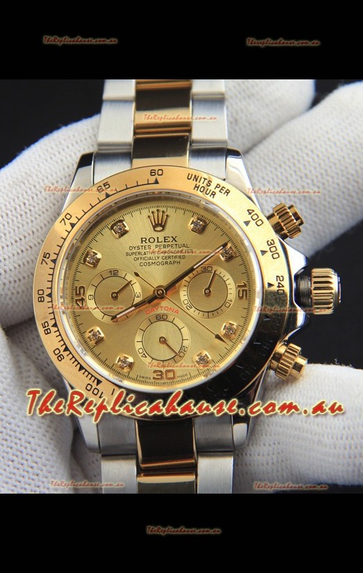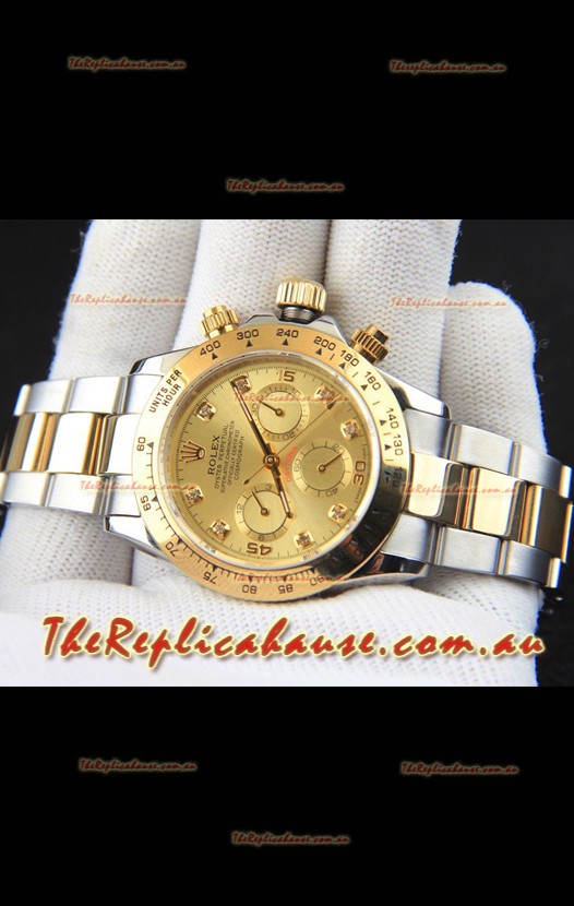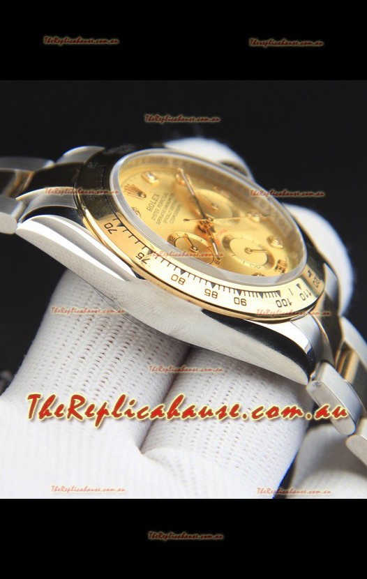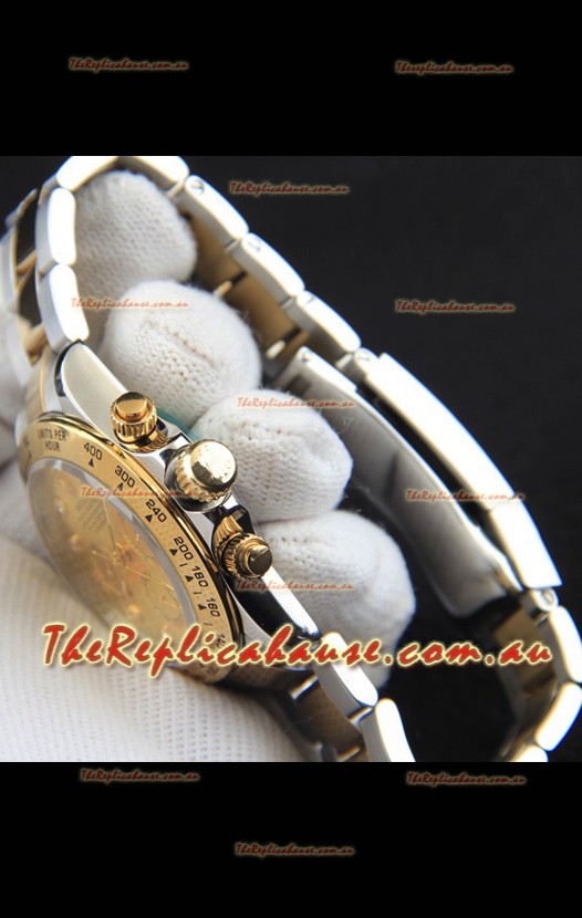 Rolex Daytona Japanese Movement Two Tone Gold Casing Watch in Gold Dial