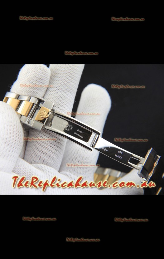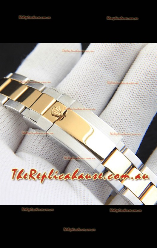 Two Tone 18K Gold Plating on 904L Solid Stainless Steel Case with Rolex Markings and Engravings