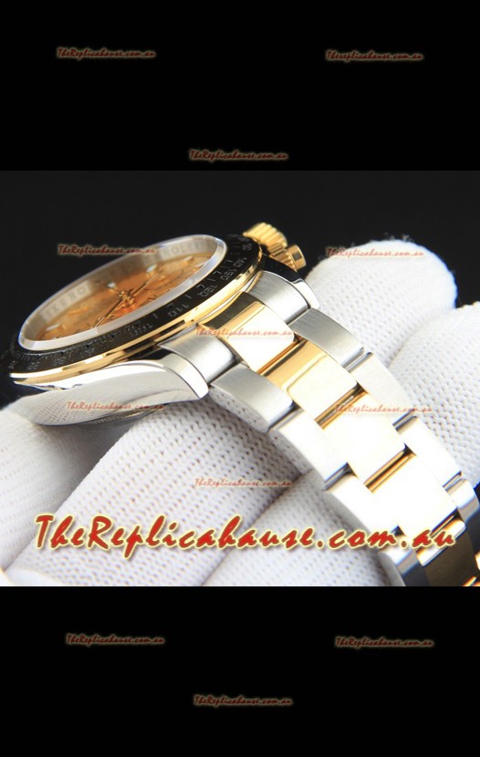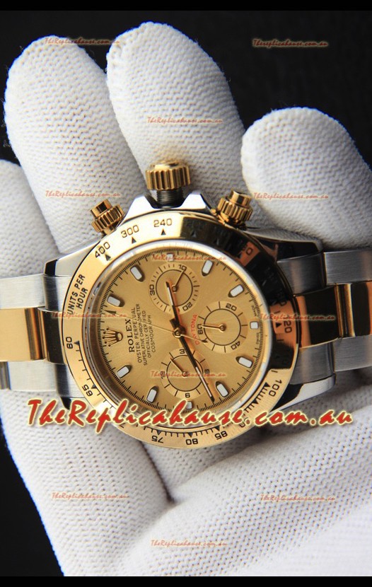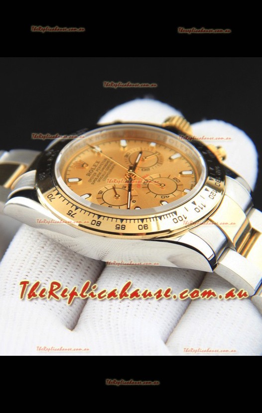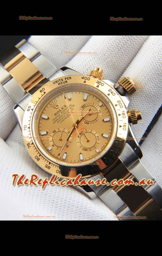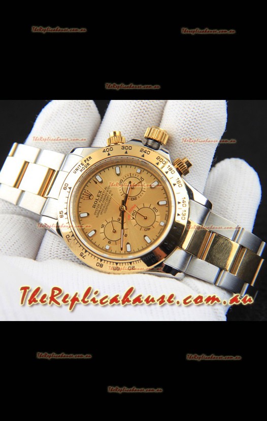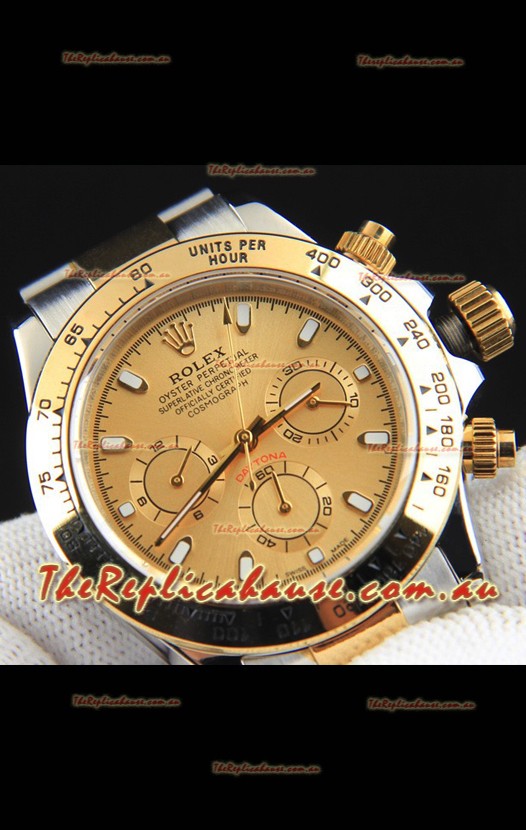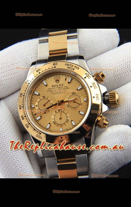 Rolex Daytona Japanese Movement Two Tone Gold Casing Watch in Gold Dial