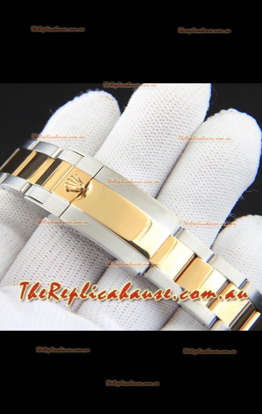 Two Tone 18K Gold Plating on 904L Solid Stainless Steel Case with Rolex Markings and Engravings