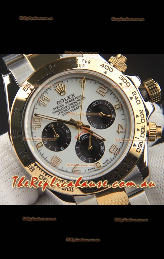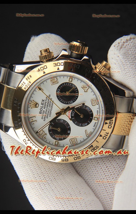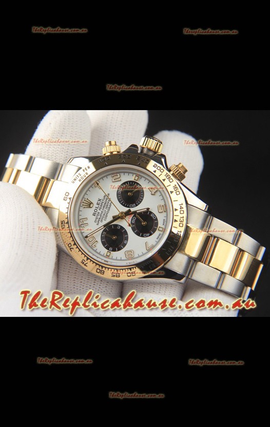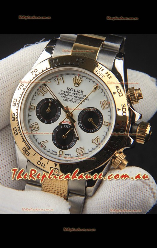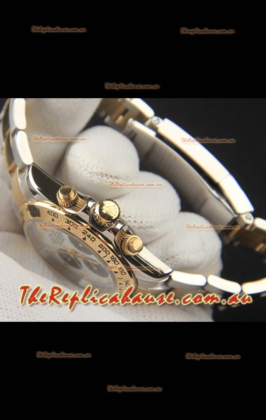 Rolex Daytona Japanese Movement Two Tone Gold Casing Watch in White Dial