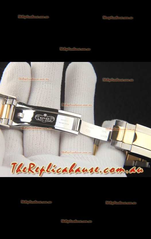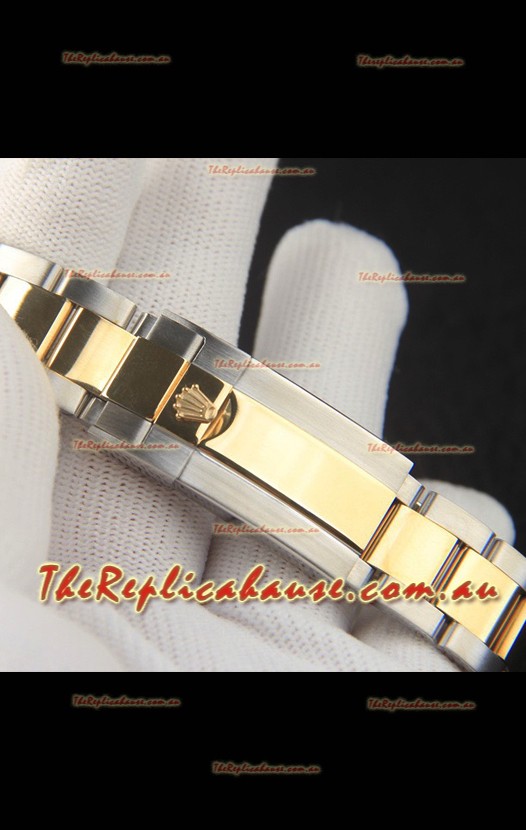 Two Tone 18K Gold Plating on 904L Solid Stainless Steel Case with Rolex Markings and Engravings