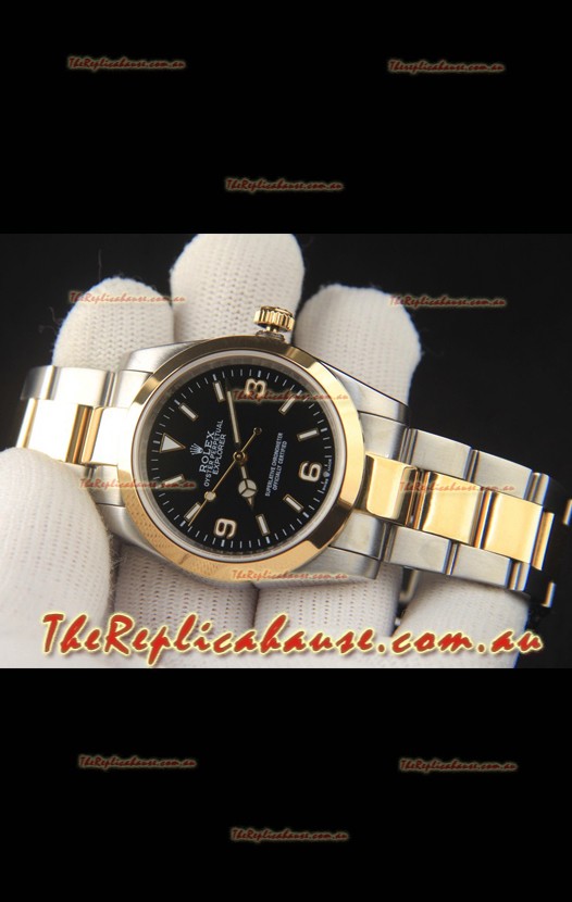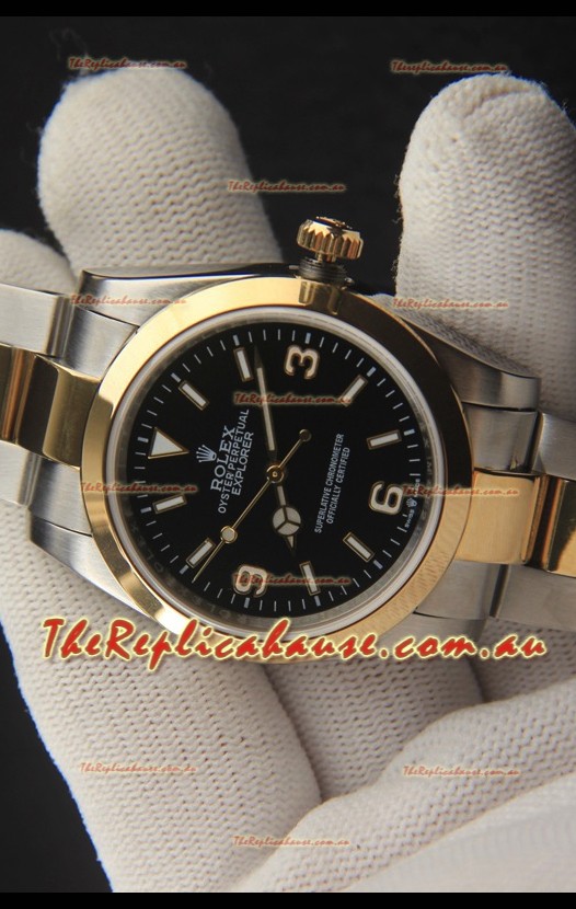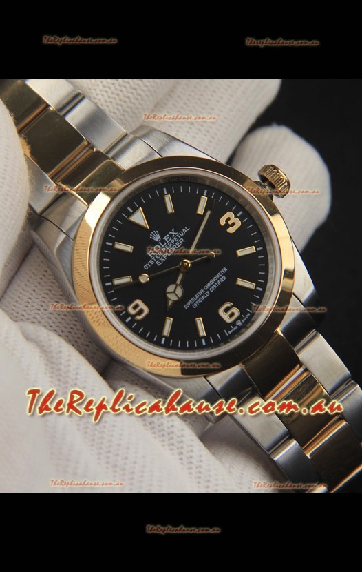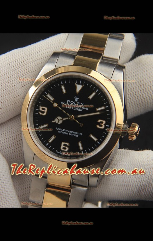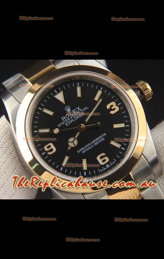 Rolex Explorer I Japanese Movement Replica Watch in Two Tone Black Dial 36MM