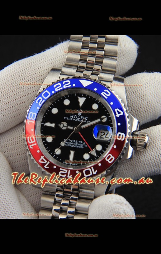 Rolex GMT Masters II Japanese Movement Replica Watch Steel Case Black Dial