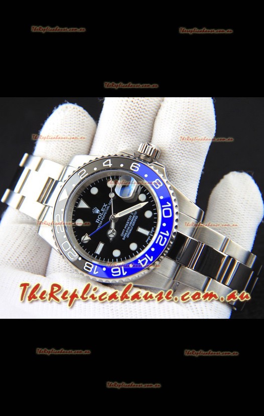 Rolex GMT Masters II Japanese Movement Replica Watch Steel Case Black Dial
