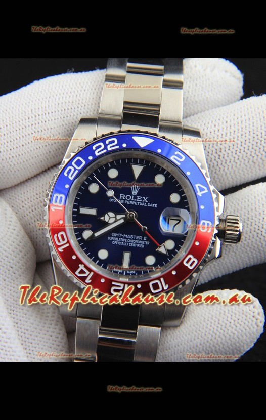 Rolex GMT Masters II Japanese Movement Replica Watch Steel Case Black Dial