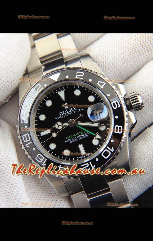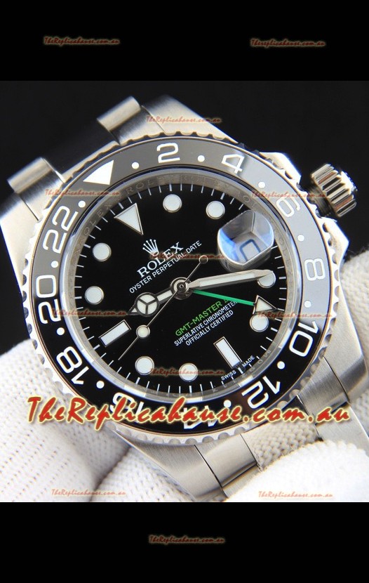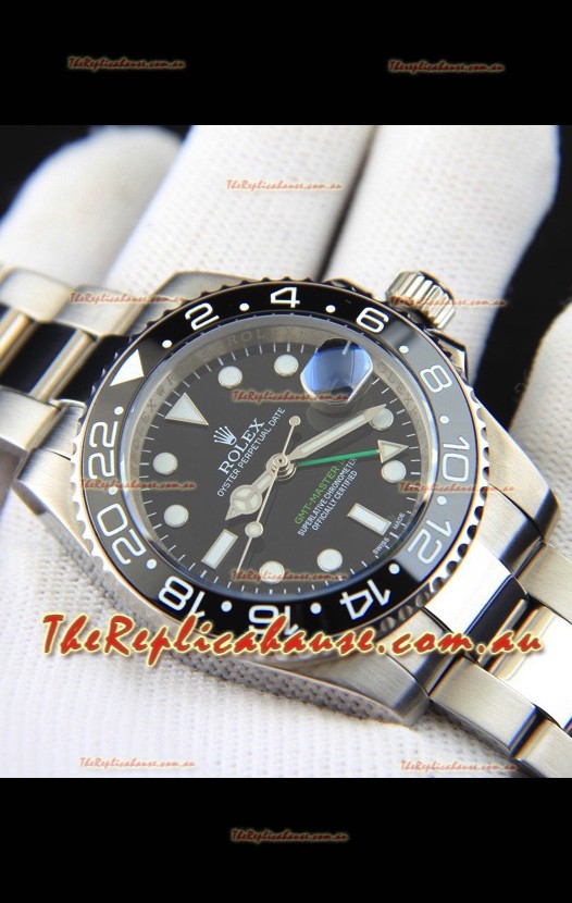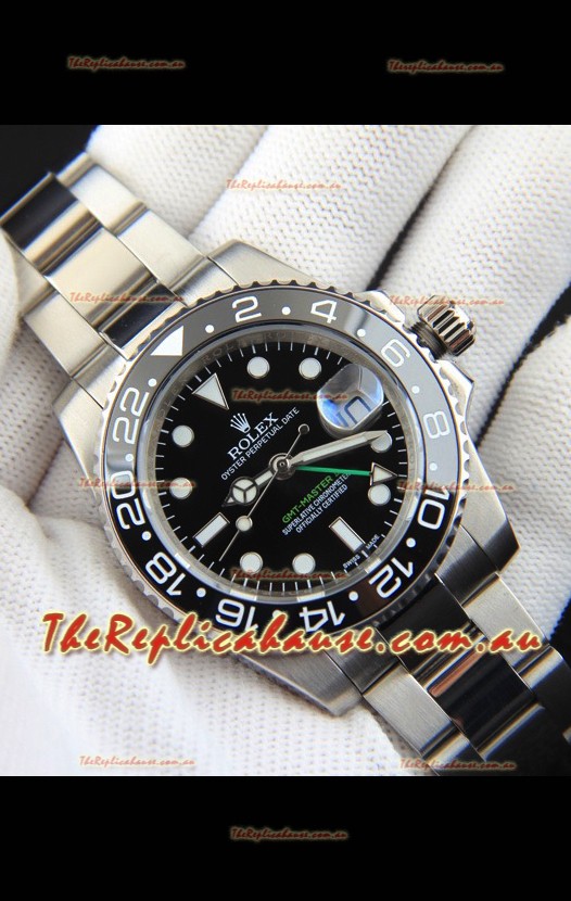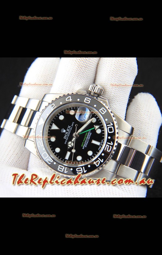 Rolex GMT Masters II Japanese Movement Replica Watch Steel Case Black Dial