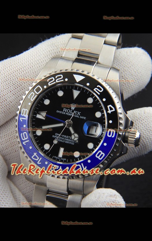 Rolex GMT Masters II Japanese Movement Replica Watch Steel Case Black Dial