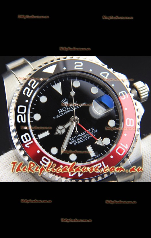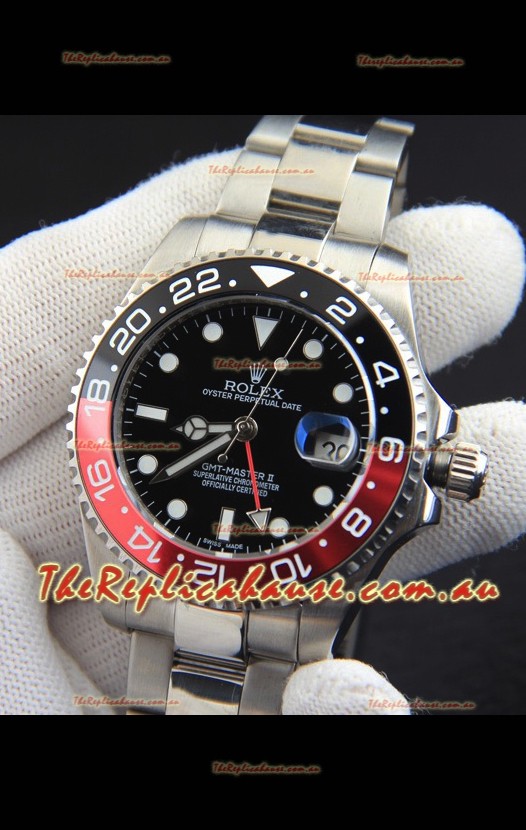 Rolex GMT Masters II Japanese Movement Replica Watch Steel Case Black Dial