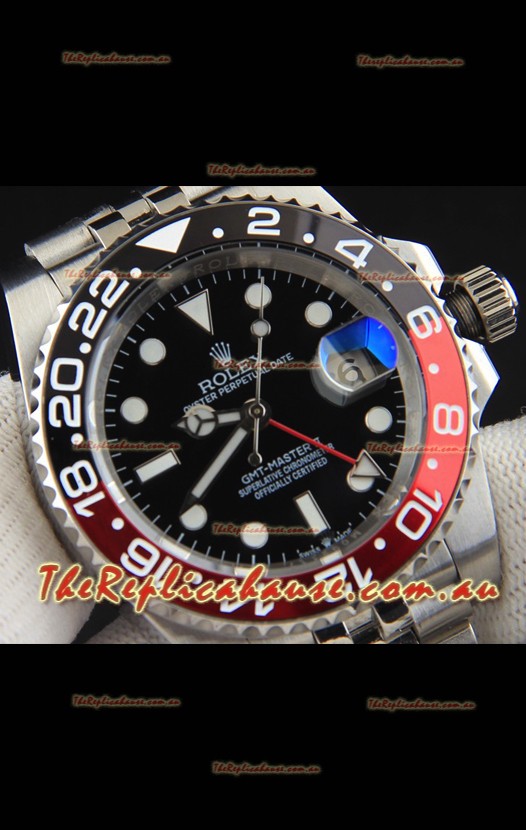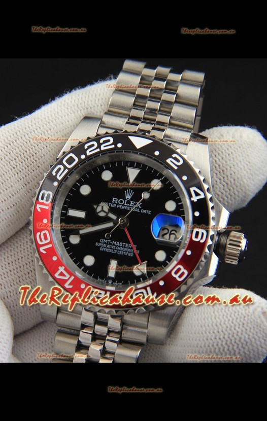 Rolex GMT Masters II Japanese Movement Replica Watch Steel Case Black Dial