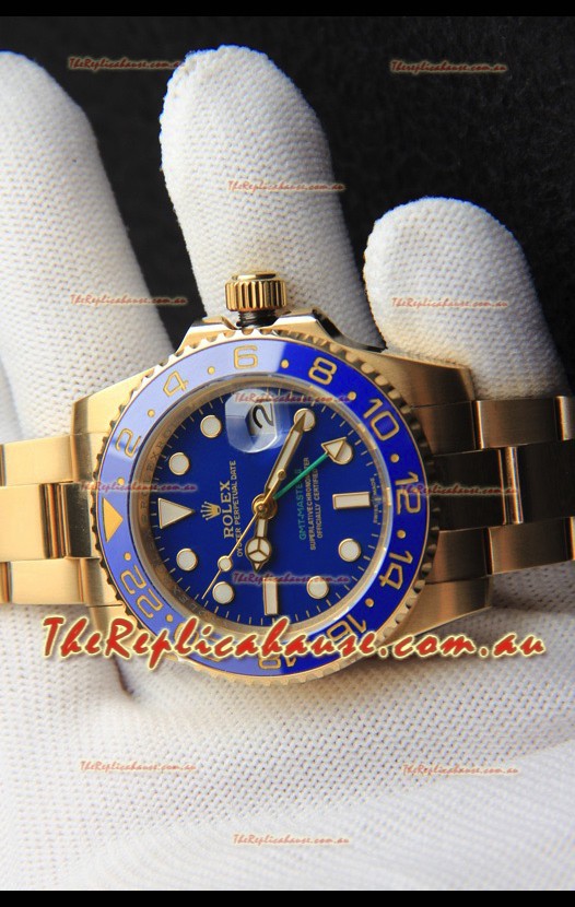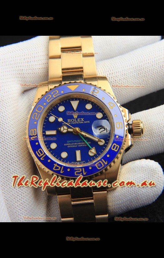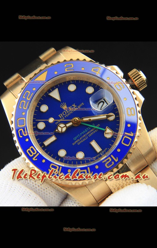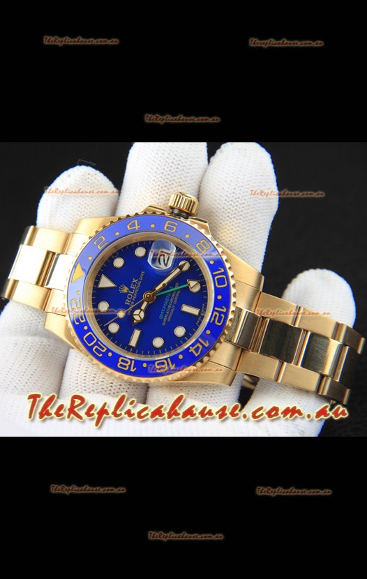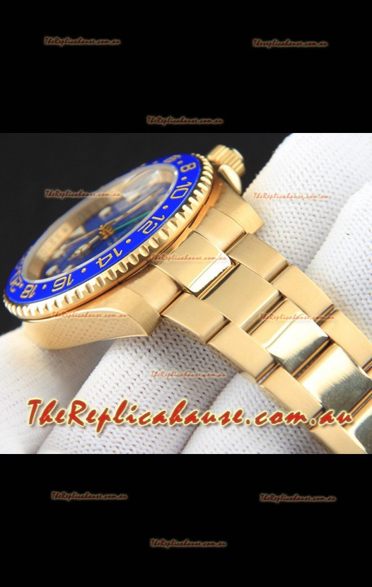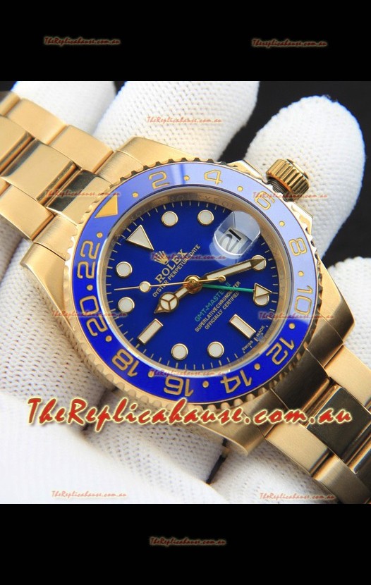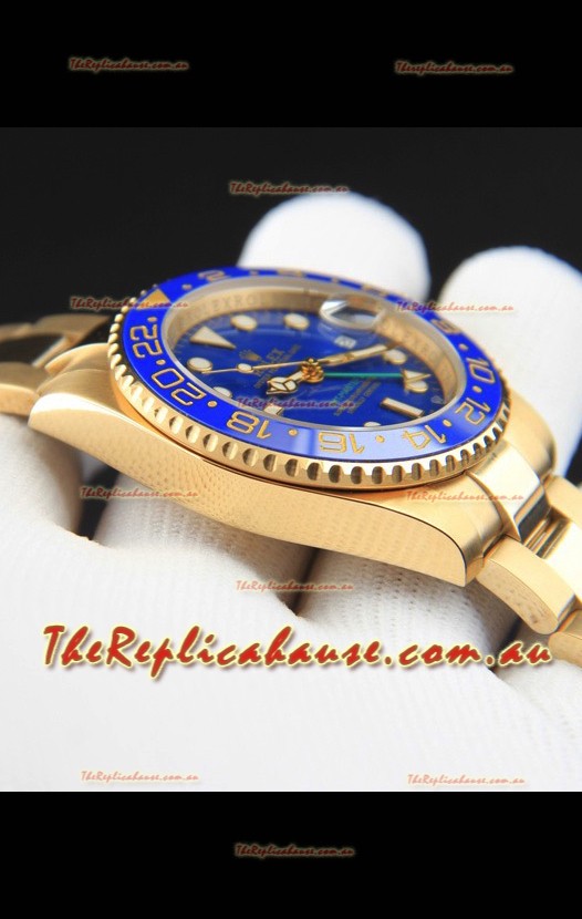 Rolex GMT Masters II Rose Gold Plating Japanese Replica Watch Blue Dial