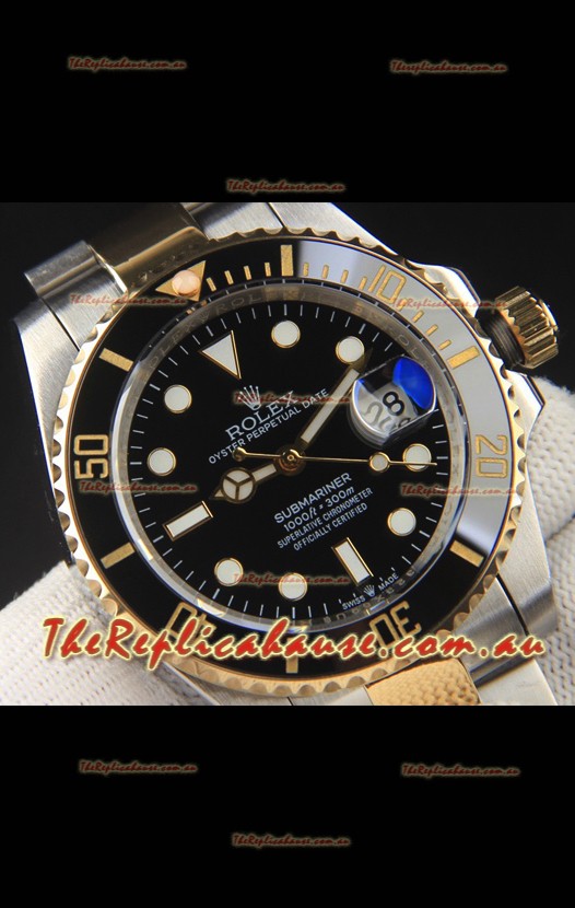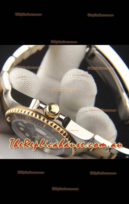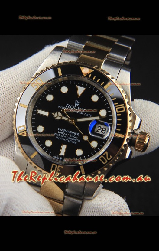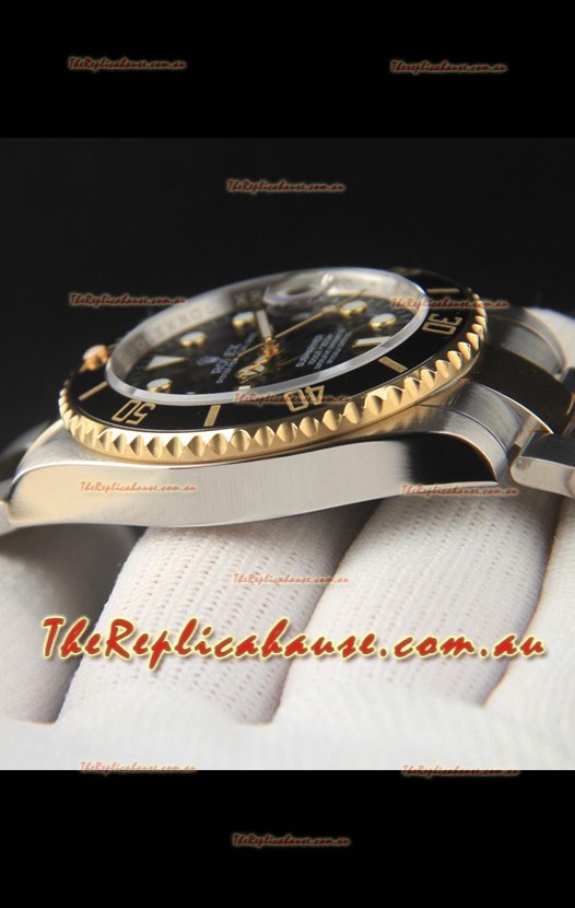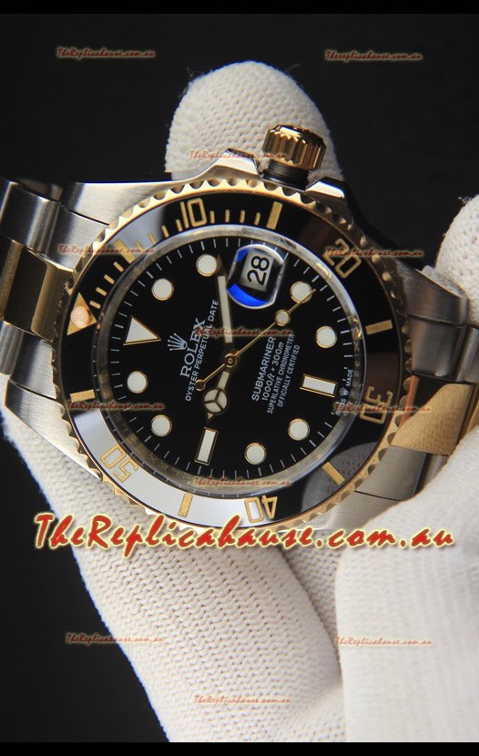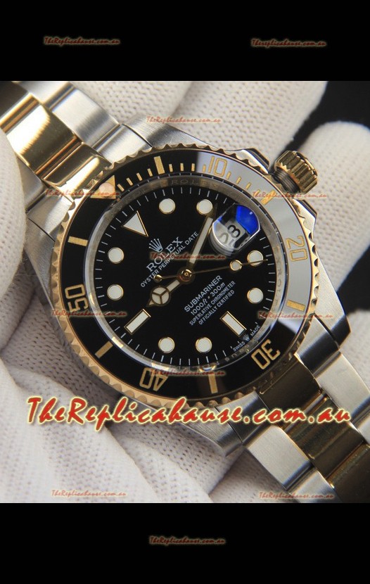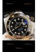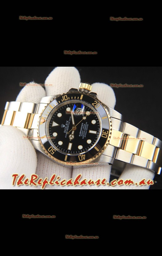 Rolex Submariner Japanese Replica Watch 904L 2 Tone Yellow Gold - Ceramic Bezel in Black